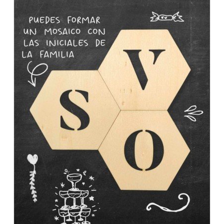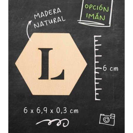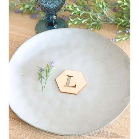 Iniciales troqueladas en estas placas de madera de color natural de 3 mm de grosor y una altura de 6 cm.